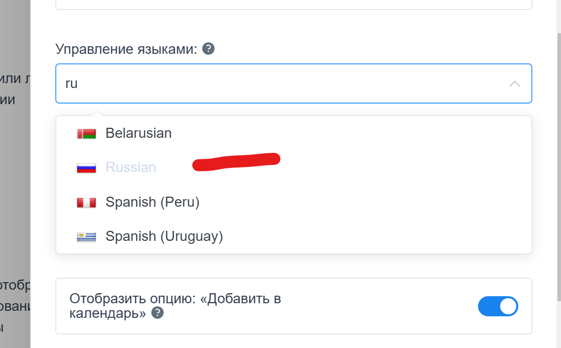 My site is in Russian, it is specified in the site settings. In the plugin itself, in the settings, in the drop-down list, Russian is not clickable for selection.