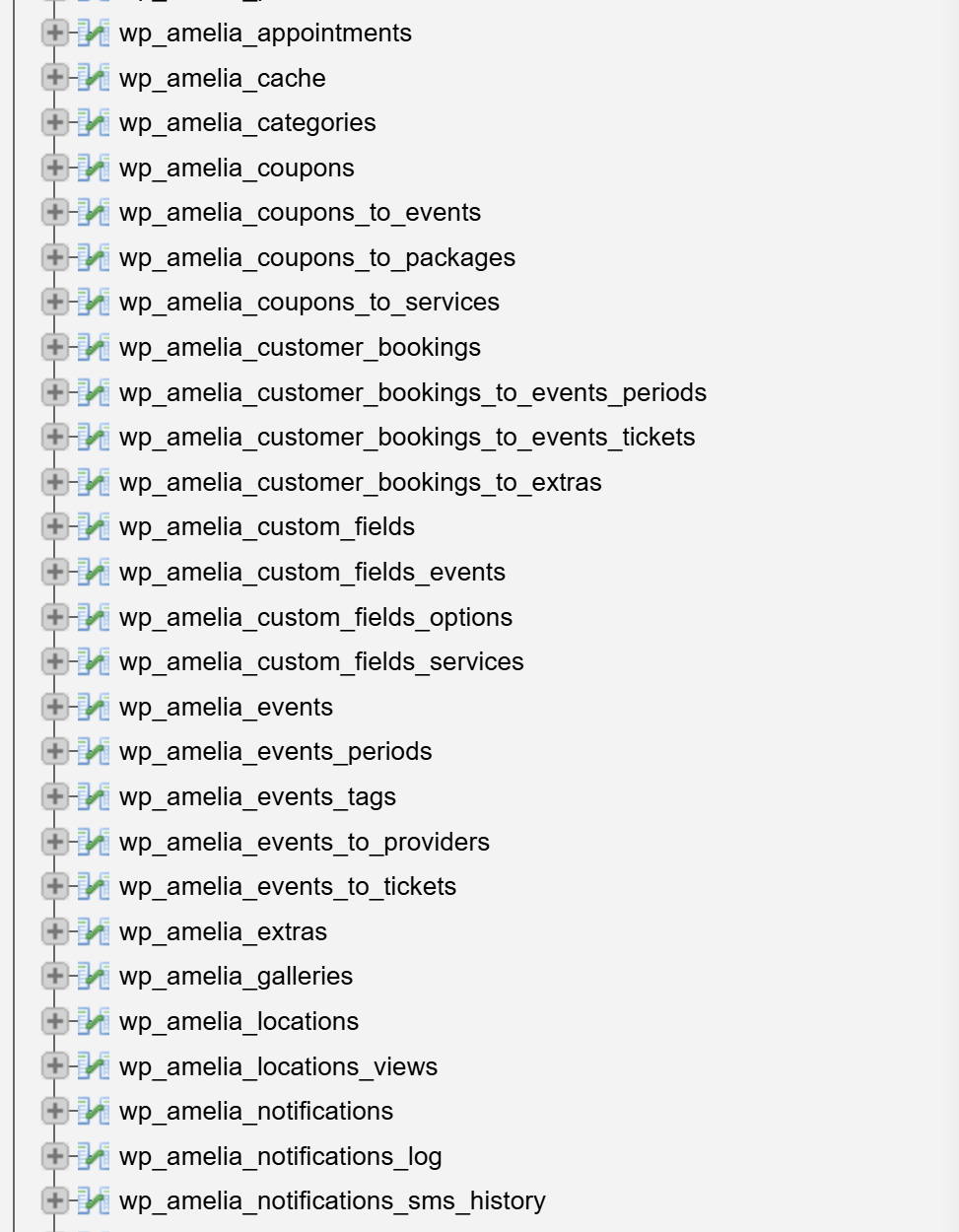 Also Marina, just so you know, in case it may be necessary to check the database in the future. I see that your own prefix is "wp_" mine is different "w6pw_", and it often varies from WordPress installation. So the correct search would've been wp_amelia_services